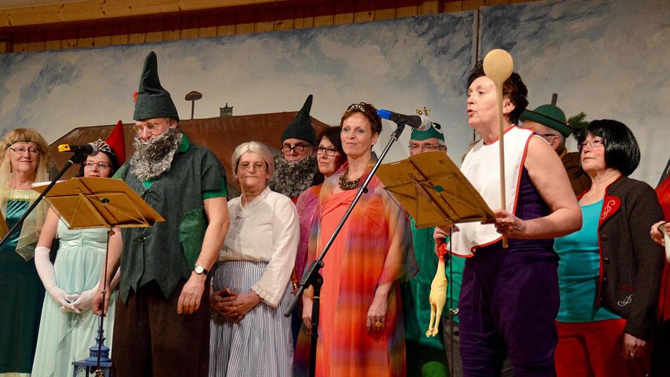 Egal ob die Turbulenzen beim Vereinsring oder bei der Burkardrother Feuerwehr, das Wallfahrtszentrum am Gerberkeller oder die geplatzten Wasserschieber der Gemeinde, sämtliche Anekdoten des vergangenen Jahres wurden mit viel Wortwitz und Gesang aufbereitet, in den das Publikum gerne mit einstimmte. Auch äußerlich sorgten die Sänger mit ihren Kostümen für märchenhafte Stimmung.