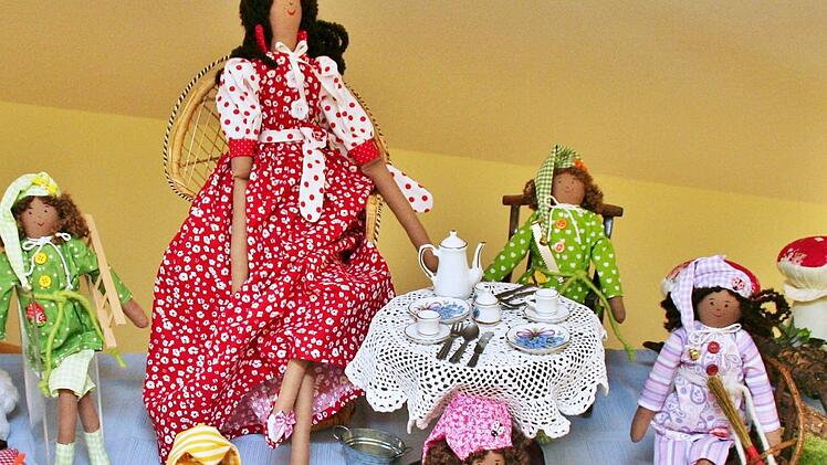 "Eine von den drei Nähmaschinen rattern immer", verrät Margarete Bömmel aus Nüdlingen. Seit die gelernte Textilkauffrau mehr Zeit für ihr Hobby, das Nähen hat, kann sie ihre Kreativität und Phantasie ausleben. Die Gestaltung von handgemachten Puppen füllt ihren Tag aus, ist zur Leidenschaft geworden und was früher eher zufällig entstanden ist, wird heute gezielt einem Thema zugeordnet.