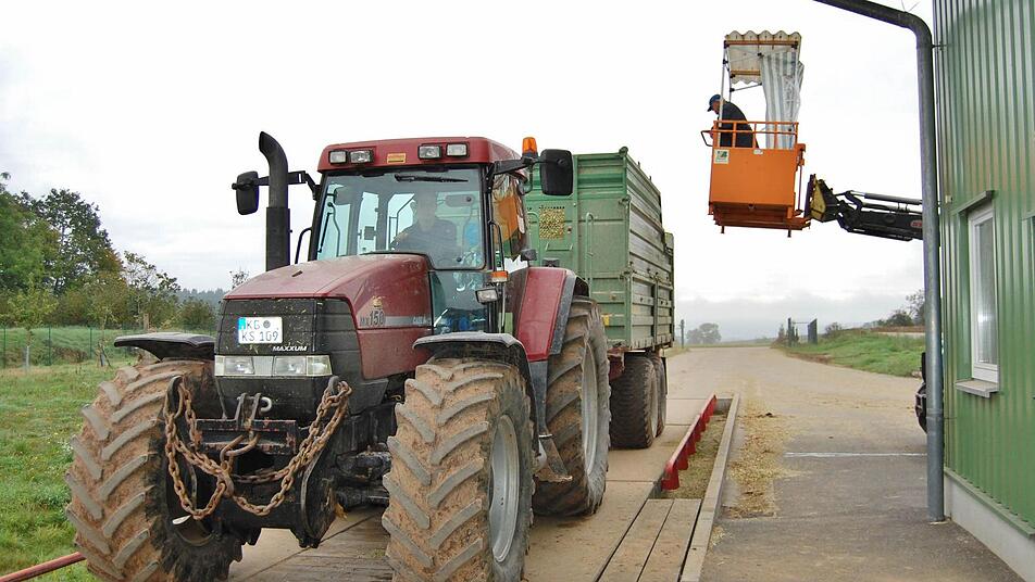 Gerade ist er mit seinem Schlepper und dem mit Mais-Häcksel voll beladenen Zwölf-Tonnen-Hänger auf die Waage gefahren. Manfred Hofmann entnimmt der Ladung eine Probe: "Die brauchen wir zur Feststellung des Trockenmassegehalts."