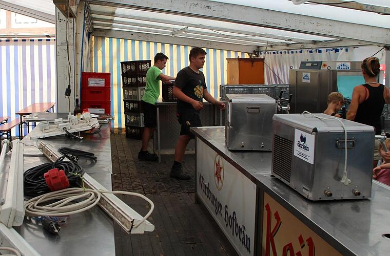 Um die Bar und den Ausschank zu besetzen, braucht es Unterstützung. "Dieses Jahr haben wir etwa 120 Helfer", sagt Below. Darunter Vereinsmitglieder, Eltern der Jugend- und Kinderfeuerwehr, aktive Wehrleute oder aber engagierte Bürger. "Wir haben am Dienstagnachmittag mit dem Aufbau begonnen. Dabei waren ganze Familien beteiligt." Die erste Resonanz Belows: "Die Stimmung passt und alle sind motiviert und packen mit an."