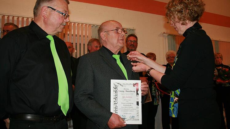 Wolfgang Mahlmeister, "Urgestein" der Sängervereinigung mit Prädikat "besonders wertvoll" wurde am Abend zum Ehrenmitglied des Vereins ernannt. In den 40 Jahren aktiver Vorstandsarbeit habe Mahlmeister den Verein geprägt wie kein anderer, hieß es in der Laudatio. Er wurde zudem für 50 Jahre Mitgliedschaft und aktives Chorsingen ausgezeichnet.