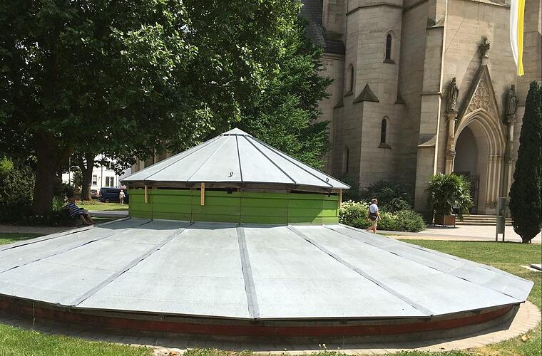 Immer wieder haben sich Passanten in den vergangenen Wochen gewundert, dass der Marienbrunnen noch eingehaust ist: Während alle anderen Brunnen in der Stadt längst plätscherten, sah es vor der Bad Kissinger Stadtpfarrkirche so aus, als wäre die Winter-Einhausung vergessen worden. "Die Stadt Bad Kissingen hatte den Marienbrunnen nach dem Winter nicht in Betrieb genommen, weil eine Betonsanierung durchgeführt werden sollte", teilte nun Mario Selzer, persönlicher Referent von Oberbürgermeister Kay Blankenburg, auf Nachfrage mit. In der vergangenen Woche ging der Brunnen aber dann doch in Betrieb - vorerst ohne Sanierung.