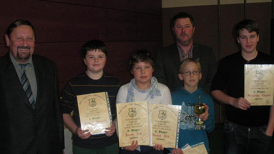 Bei den Erwachsenen setzte sich an der Saale bei Dauerregen Michael Jeßberger mit einem Fisch von 550 Gramm vor Ernst Rudolf mit 250 Gramm durch. Am vereinseigenen See Laake bei Heidenfeld behauptete sich Marcus Engert mit 8200 Gramm vor Matthias Nickel mit 4600 Gramm und Manfred Schmitt mit 3950 Gramm. Pokalsieger 2013 wurde Marcus Englert, Fischerkönig Matthias Nickel.