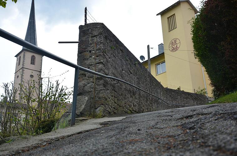 Die Gemeinde Bad Bocklet saniert den Wall am Feuerwehrhaus Steinach, die sie 2012 von der Pfarrpfründestiftung übernommen hat.