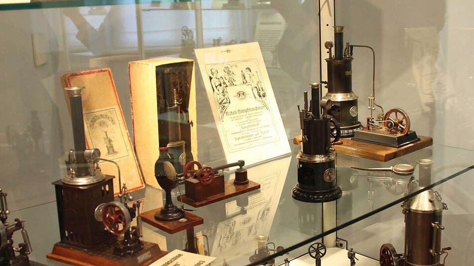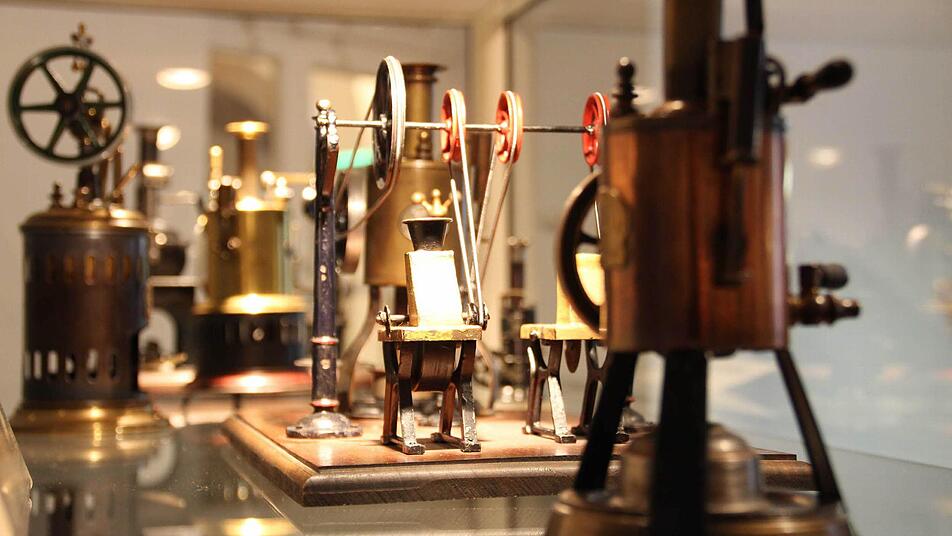 Jörg Ahlert kommt ins Schwärmen. Das Blech der Modelle schimmert unter den Strahlern in den Vitrinen. Über 100 Dampfmaschinen und Motoren in Miniaturformat sind im Museum Obere Saline in Bad Kissingen ausgestellt. Der Spielwarenverkäufer Ahlert, sein Vater und Hilla Schütze haben ihre Sammlungen ins Museum geräumt. Eine Präsentation für kleine und große Kinder.