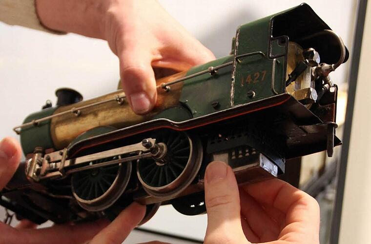 industriellen Revolution befeuert wurde. Die Dampfmaschinen im Kleinformat gab es für den großen und den kleinen Geldbeutel. Viele Jungs sparten eisern ihre Pfennige, um sich das technische Spielzeug zu leisten. So auch der Bruder von Hilla Schütze. Sie stellt die Sammlung ihres Bruders Manfred in der Spielzeugwelt im oberen Stockwerk des Museums aus.