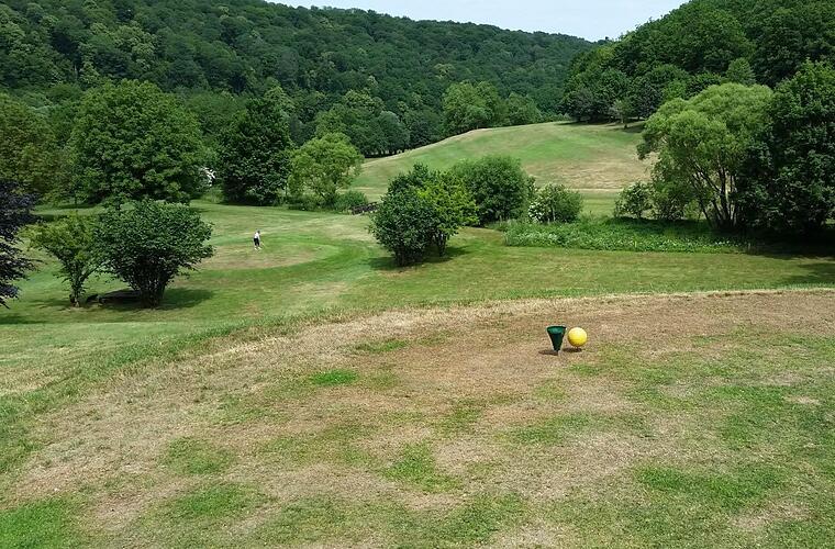 Trotz aller Bemühungen ließe es sich nicht vermeiden, dass auch der Golfplatz, gerade an seiner Südseite, erste braune Stellen zeigt. Er als Golfer registriere die Trockenheit auch beim Schlagen des Golfballs. Trifft man diesen, wird oft auch ein Büschel Gras mit herausgerissen. Im Normalfall wird das Stück dann vom Spieler wieder eingesetzt und wächst an.