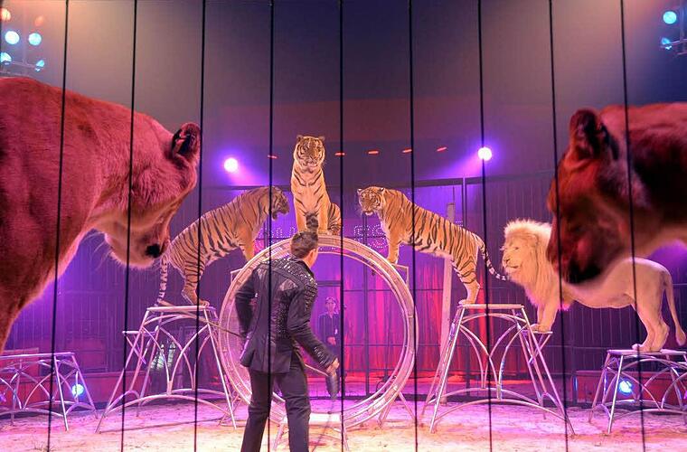 Geblieben hingegen sind die "traditionellen Nummern". Egal ob es nun eine Hochseilnummer, die gemischte Löwen- und Tigerdressur oder der Aufmarsch der drei mächtigen Elefanten ist, da ist Zirkus noch Zirkus wie er eh und je war, nur dass die Showeffekte aus Licht und Qualm mehr wurden.