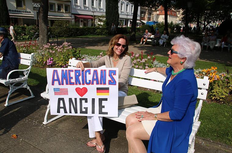 Aus Ansbach war Kimberley Summers angereist. Die Amerikanerin hatte sogar ein Plakat mitgebracht. "Viele Amerikaner sind Merkelfans", betonte Summers und hielt ihr mitgebrachtes Plakat mit Herzchen für die Kanzlerin in die Höhe.