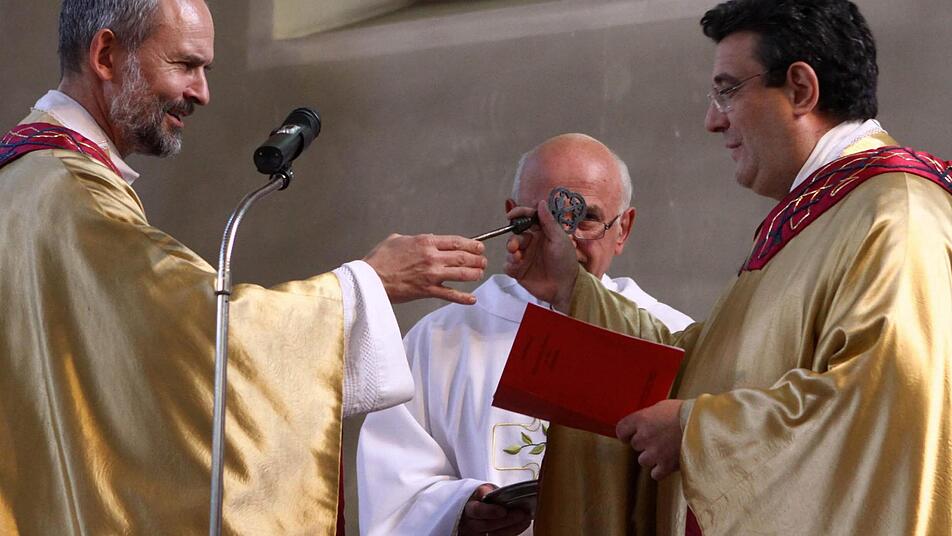 Große Erleichterung Aus den einzelnen Grußworten, teils in der Kirche, teils auch während des Empfangs im Pfarrheimsaal, spiegelte sich die große Erleichterung und Freude über das Ende der Vakanz und das zukünftige Wirken dieser priesterlichen Doppelspitze wider. "Gott sei Dank, wir haben wieder einen Pfarrer", freute sich die Pfarrgemeinderatsvorsitzende Waltraud Klüber. Margarita Huppmann-Fronczek, die für die Kirchenverwaltungen sprach, lobte den neuen Stadtpfarrer "als Kommunikator, Inspirator und Glaubensverkünder mit spürbarer Präsenz".