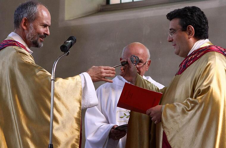 Prodekan Armin Haas aus Schondra hatte die Aufgabe, den neuen Stadtpfarrer in sein Amt einzuführen. "Nach fast einem Jahr Vakanz ist dies ein freudiger Tag für die Kirchengemeinde. Endlich herrschen wieder klare Verhältnisse. Durch die Beistellung eines Pfarrvikars (ein Pfarrer ohne verwaltungstechnische Befugnisse) werden neue Strukturen geschaffen", betonte Haas. "Dennoch handelt es sich um eine Notlösung, denn die Mehrarbeit will bewältigt werden." Es sei aber für Brückenau der realistisch machbarste Weg gewesen, so Haas weiter. Er appellierte an den neuen Stadtpfarrer: "Bewahre trotzdem immer Deine innere Lockerheit und Dein stetes Lächeln."