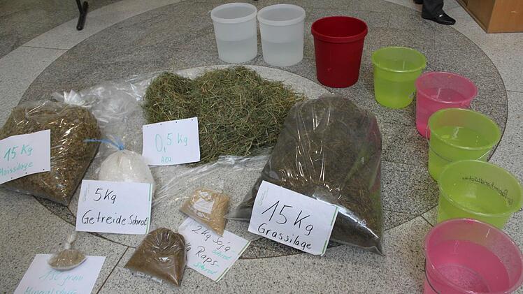 Speiseplan einer Kuh "Was meint ihr, was eine Kuh am Tag trinkt?", fragt Jörg die Kinder. Die Kreisbäuerin hat den Speiseplan einer Kuh in die Aula der Grundschule mitgebracht: 15 Kilogramm Maissilage, genauso viel Grassilage, 5 Kilogramm Getreide-Schrot, 150 Gramm Mineralstoffe ... und eben 80 Liter Wasser. "Wenn sich eine Kuh gesund ernährt, geht es ihr gut und sie gibt etwa 20 Liter Milch pro Tag", erklärt Jörg.