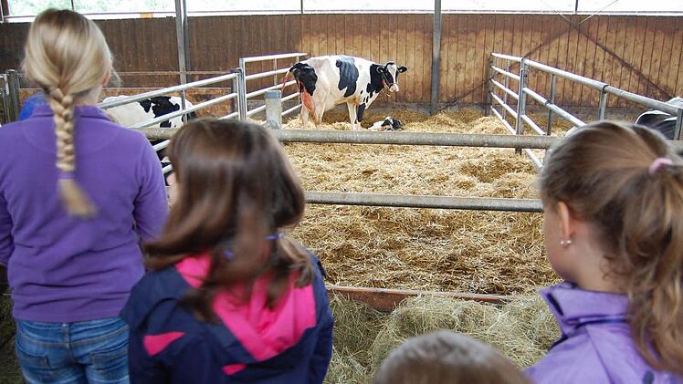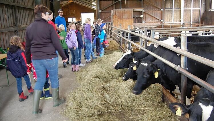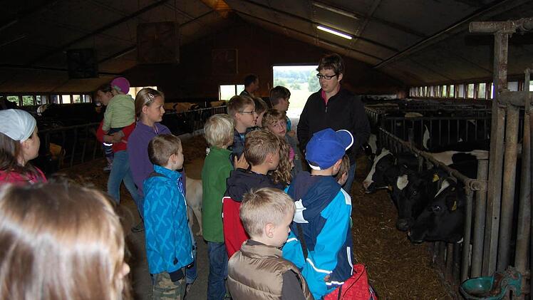 Anja und Diethard Wagenbrenner haben einen Milchviehbetrieb. Die Arbeit ist nicht einfach, zufrieden ist das Ehepaar trotzdem, wie die Oberthulbaer Kinder erfuhren.