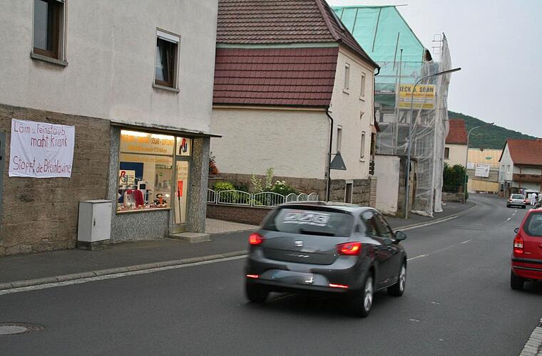 Mehrere Transparente in der Ortsdurchfahrt von Nüdlingen weisen auf die Verkehrsbelastung der Anwohner hin. Noch in 2015 werden zusätzliche Mittel für einen Lärmaktionsplan in den Haushalt eingestellt, so viel steht fest.