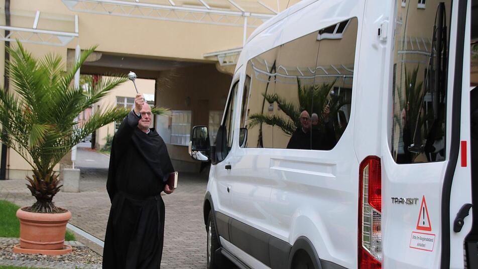 Stadtpfarrer Pater Markus Reis segnete das neue Fahrzeug und bat um Gottes Beistand für die künftigen Fahrer.