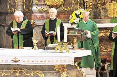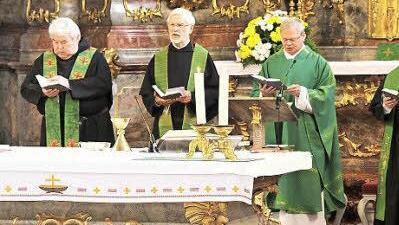 Die barocke Klosterkirche bildete den würdigen Rahmen für einen Festgottesdienst zu Ehren zweier Patres des Augustinerklosters, die vor etlichen Jahrzehnten ihre Profess abgelegt haben und nun in Münnerstadt leben.