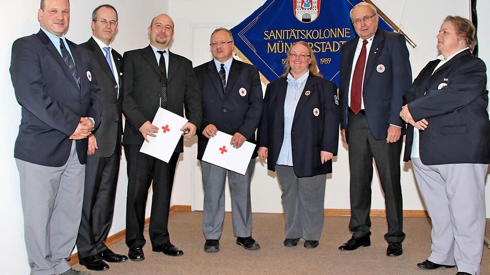 Alles begann mit einer Werbefahrt der Sanitätskolonne Bad Kissingen im März 1926 nach Münnerstadt. Am 2. Dezember desselben Jahres wurde hier das Rote Kreuz offiziell gegründet, Kolonnenführer wurde Bürgermeister Hanshans. Fast 90 Jahre später wurde nun in der Alten Aula mit vielen Ehrungen und Grußworten dieses Jubiläum ausgiebig gefeiert.
