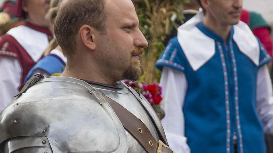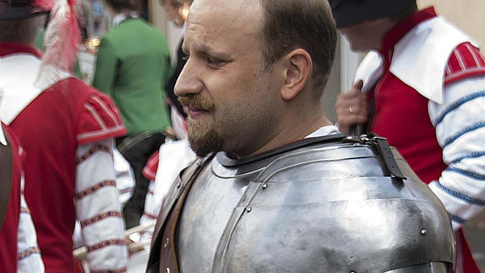 Jahr für Jahr hatte er bis zu dreimal, wenn das Wetter keinen Strich durch die Rechnung machte, eine der schwierigsten Rollen. Schwierig vor allem deshalb, weil er als einziger der zahlreichen Heimatsspiel-Akteure in einer schweren und sperrigen Ritterrüstung aus Metall den Michel Stapf, der im Jahr 1641 die Stadt rettet, auf der Bühne verkörpern musste. "Das war ganz schön