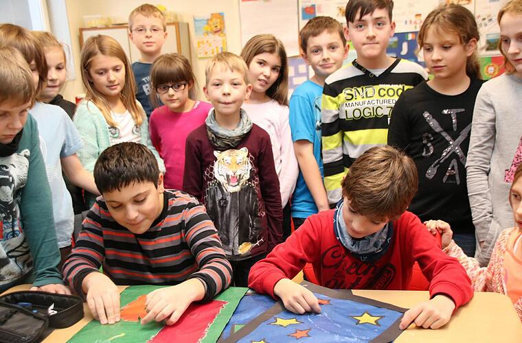 Der Fußboden in den Klassen 4a und 4c der Münerstädter Grundschule machte deutlich: Hier wurde richtig viel gearbeitet. Überall verstreut lagen bunte Papierschnitzel. Auf den Schulbänken darüber ausgebreitet Adventsbilder aus Transparentpapier. Die Buben und Mädchen bastelten für den Adventskalender in den Fenstern des Heimatspielhauses.