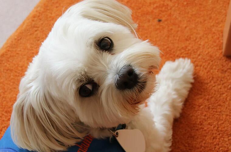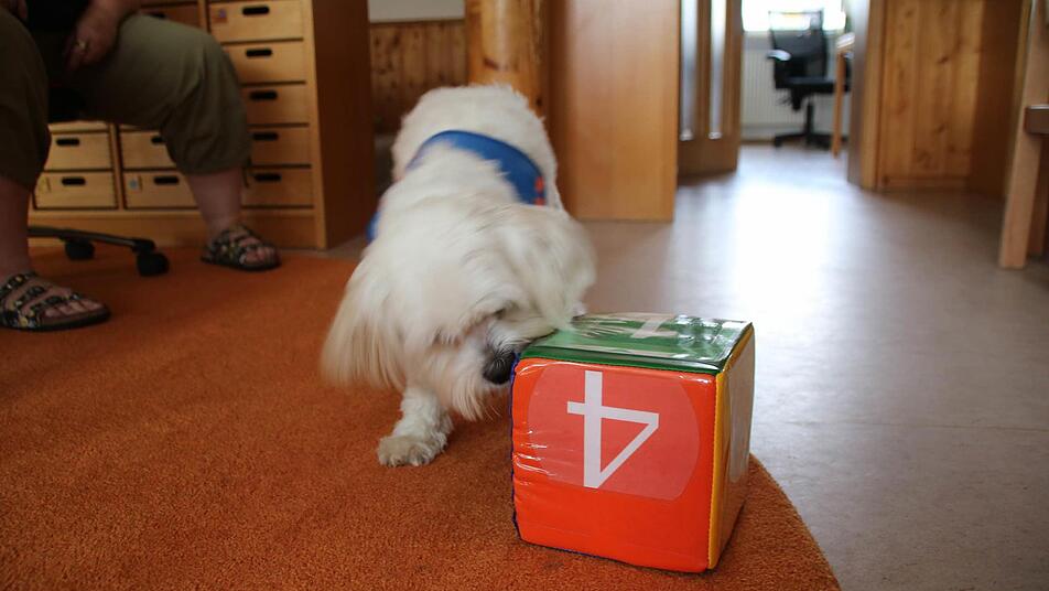 So hat der kleine Baumwollhund gelernt, einen Würfel zu schubsen. Wenn er das macht, hätten die Kinder viel mehr Spaß am Lernen, weiß Bianca Müller.