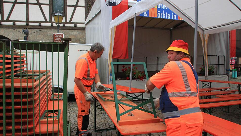 Als die letzten Gäste das Stadtfest in Münnerstadt verlassen hatten, war die Arbeit für die vielen Helfer noch nicht zu Ende. Am Montag stand der letzte Kraftakt des dreitägigen Festes "Musik und Märkte" an: der Abbau. Noch einmal mussten die ehrenamtlichen Helfer des TSV Münnerstadt anpacken, war der Bautrupp mit vier Männern im Einsatz und kümmerten sich die Mitarbeiter von Kultourismus um die großen und kleinen Dinge, die so ein Fest mit sich bringt.