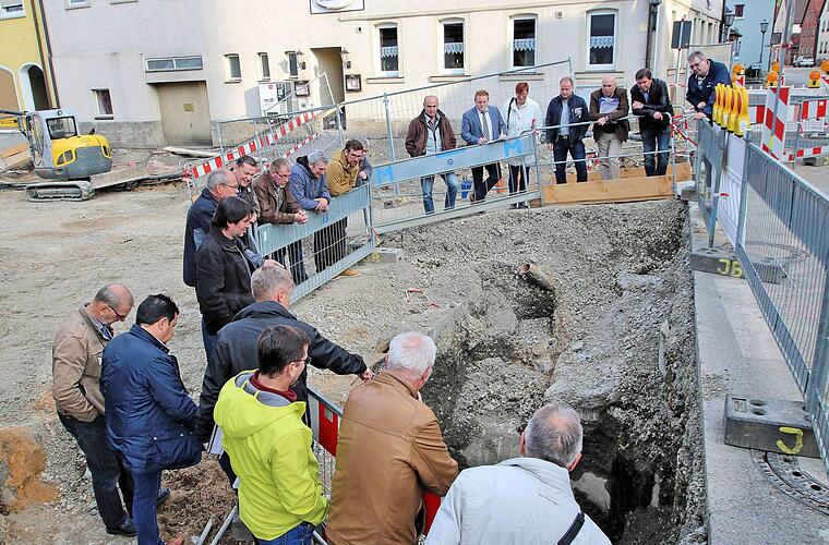 Eine knappe Stunde tagte der Marktgemeinderat im Freien, und zwar auf der Baustelle der Ludwigstraße und des Dorfplatzes im Ortsteil Poppenlauer. Bei den Bauarbeiten hatten sich einige nicht voraussehbare Punkte ergeben, erläuterte Architekt André Lohmann (Ingenieurbüro Perleth Schweinfurt). So wurde ein alter, perforierter Kanal gefunden, der einbetoniert werden musste.