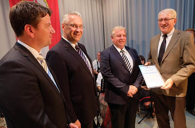 Zum Abschied aus dem Bürgermeisteramt kam sein persönlicher Freund, Ministerpräsident Horst Seehofer, nach Thundorf, und nun erhielt er von dessen Stellvertreter und Staatsminister des Innern, Joachim Herrmann, die Urkunde zur Ernennung zum Ehrenvorsitzenden.