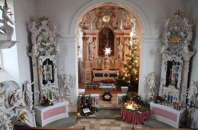 Im vergangenen Jahr brachte Joachim May vom Weihnachtsmarkt in Dresden einen leuchtenden Stern mit, der derzeit ein zentraler Blickfang ist. Liebevoll aufgebaut wurde wieder die Bacher-Krippe aus Südtirol. Unter Pater Ignatius wurden die geschnitzten Figuren vor 50 Jahren angeschafft. Den weihnachtlichen Stall hat Walter Seit aus Althausen damals gefertigt. Von seinem Bruder Raimund stammen die Holzschindeln für das Krippendach. Abgebaut wird der weihnachtliche Schmuck wieder nach dem 11. Januar. Geöffnet ist das Althausener Gotteshaus immer am Sonntag und am Feiertag.