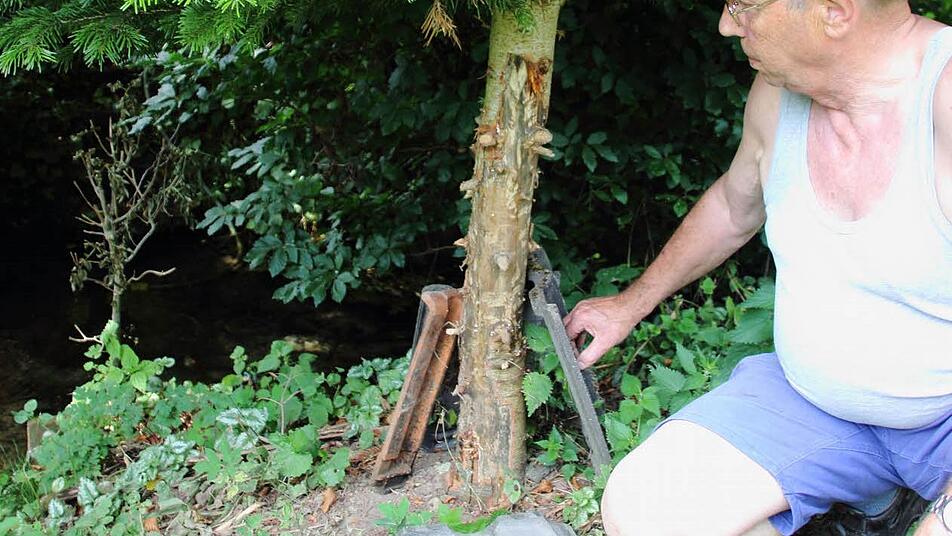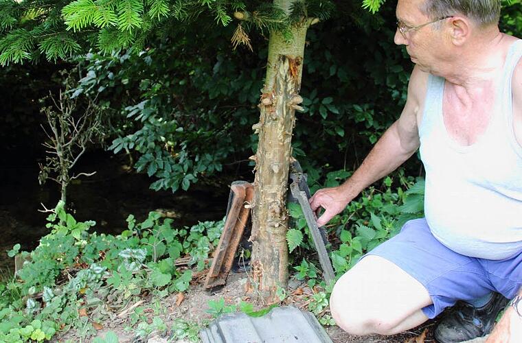 Franz-Josef Blümlein ist Gartenbesitzer am Talwasser und er hat sowohl den Beweis an seinen Bäumen, als auch von einer Kamerafalle.