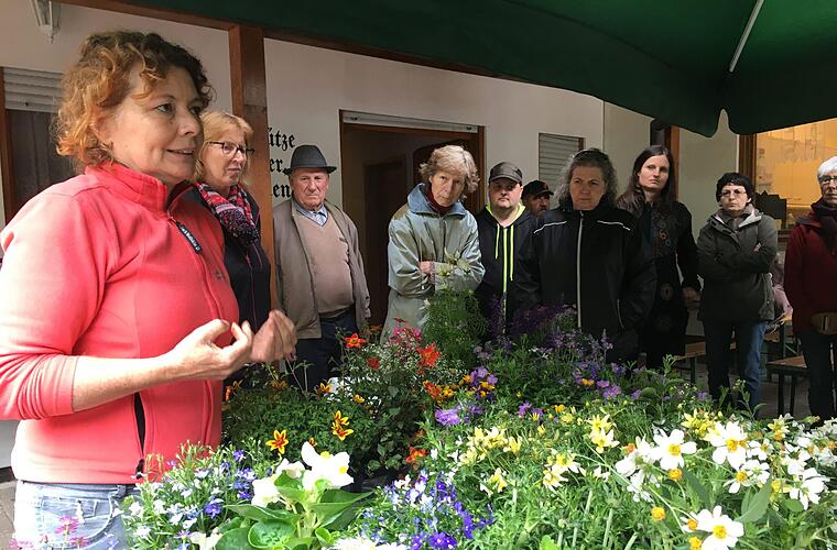 Außerdem zeigte sie den Besuchern passende Blumen für den Balkonkasten wie Salbei oder die Japanische Scabiose, Natternköpfe, die Sternmarie oder auch den frechen Michel. Und sie gab Ansaat-Tipps, musste jedoch auch gestehen, dass momentan nahezu überall die Blumenmischungen ausverkauft sind. Allerdings könne man Mehrjährige bis Mitte September aussäen.