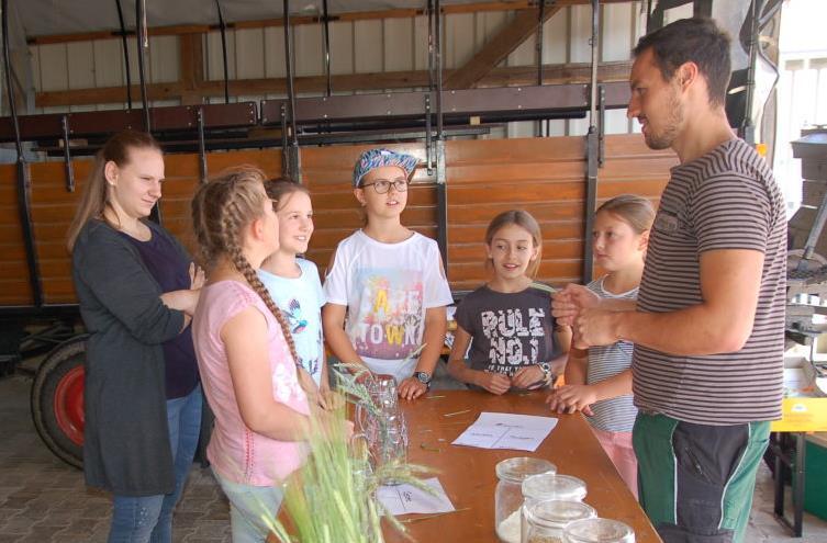 Doch nicht nur die Getreidesorten waren interessant. Noch mehr bestaunten die Kinder die riesigen Maschinen, die eingesetzt werden. Ob ein Traktor, ein Mähdrescher, ein Grubber oder andere Maschinen - das Interesse war riesengroß. Ein krönender Abschluss war für die Kids die Fahrt mit einem Planwagen hinaus in die Burgläurer Flur, wo die Getreidefelder mit ihren verschiedenen Kornarten vor Ort besichtigt wurden. In Kürze wird dort gedroschen, "in diesem Jahr ungewöhnlich früh", wie Stefan Back anmerkte.