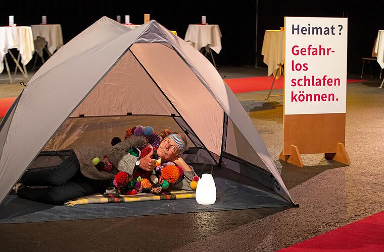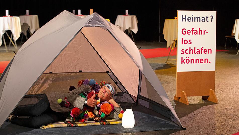 Außerdem zeigt an diesem Abend die Münnerstädter Künstlerin Mia Hochrein ihre Kunst-Performance "Reisebüro in die Heimat". Was bedeutet Heimat für uns? Der Ort, an dem wir wohnen? Die Art, wie wir reden? Die Menschen, mit denen wir uns umgeben? Für jeden ist Heimat etwas anderes, für alle aber ein Herzensprojekt. Hochreins rollbarer Schreibtisch, ein Zelt und sieben Tafeln mit Statements zum Heimatbegriff sind Teil der Performance, bei der sie als Helga Heimer durch die Lande reist und Interessierten auf der Suche nach ihrer Heimat beratend zur Seite steht.