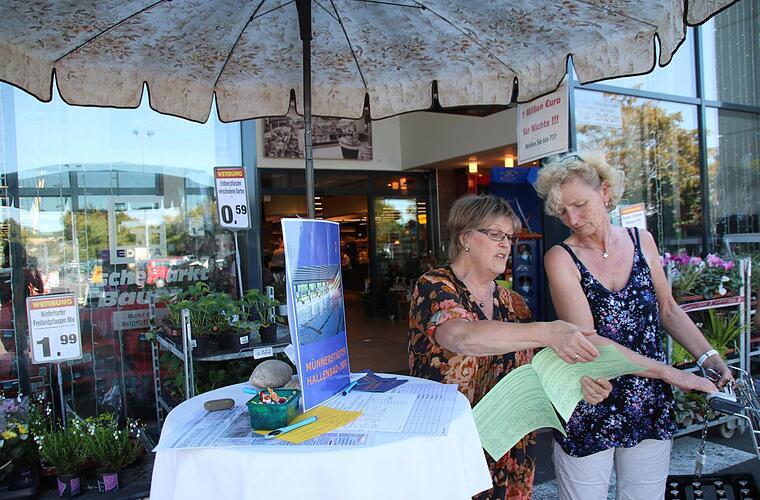 Seit drei Wochen steht Alrun Lintner jetzt bereits an ihrem Infostand vor dem Lebensmittelmarkt. "Ich habe dort das Ohr am Bürger", sagt sie. Und was sie hört, ermutigt sie, in ihrem Kampf um das Hallenbad weiterzumachen. Denen, die auf der Liste für das Bürgerbegehren unterschreiben, fehle etwas ohne das Hallenbad, hat sie festgestellt. Sie spricht aber auch von einer Ohnmacht, die ihre Gesprächsteilnehmer empfinden.