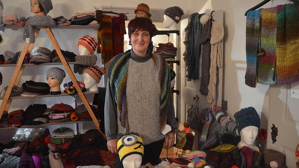 Dass in Münnerstadt Handgemachtes und Künstlerisches im Vordergrund steht, ist inzwischen bekannt. "Ich komme gerne, weil hier auf das Kunsthandwerk wert gelegt wird und nichts von der Stange kommt", sagt Heike Kallenbach. Sie hat die 90 Kilometer lange Reise aus Bad Liebenstein im Thüringer Wald auf sich genommen, um in Münnerstadt ihre selbst gemachten Schals, Pullover und Ponchos aus Garn auszustellen. Viel Zeit hat sie nicht, denn schon stauen sich die Besucher vor ihrem Stand im Heimatspielhaus.