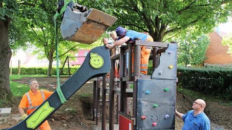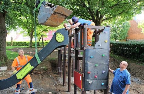 Rechtzeitig vor den Sommerferien ist es dem Bautrupp gelungen, die Geräte aufzustellen.