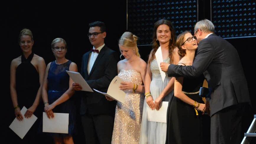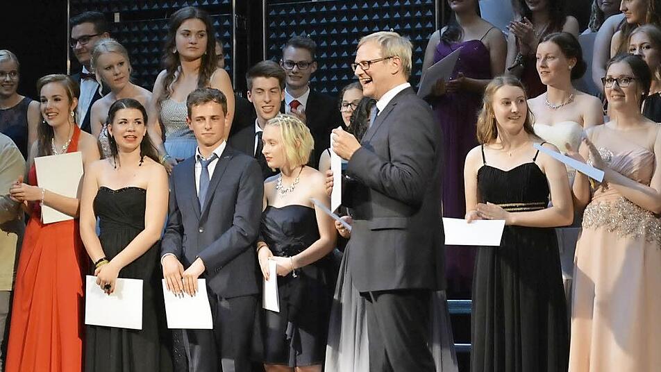 Lorena Hillenbrand überzeugte danach mit dem Lied "Beautiful" von Christina Aguilera, bevor es dann zum Höhepunkt des Abends kam: Der Überreichung der Abiturzeugnisse. "Ihr könnt stolz auf das sein, was ihr erreicht habt", erklärte Leo Pfennig, Vorsitzender des Vereins der Freunde des Johann-Philipp-von-Schönborn-Gymnasiums. Mit verschiedenen Preisen wurden die Besten geehrt. Und was darf bei der Entlassfeier in Münnerstadt nicht fehlen, das Lied "What a wonderful world", das Schulleiter Joachim Schwigon mit viel Gefühl vortrug und dabei viel Applaus erntete.