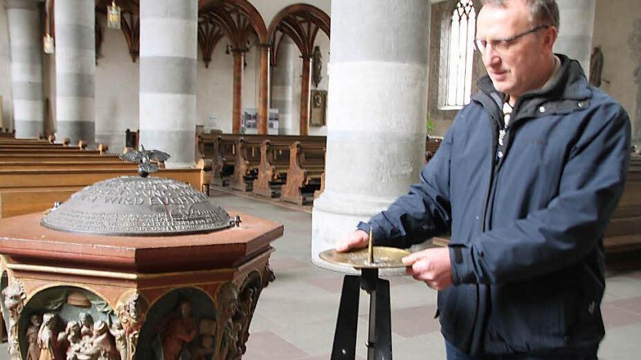 Der Diebstahl muss sich am Donnerstag zwischen 16.30 und 18.30 Uhr ereignet haben.Die Pfarrei hat Anzeige erstattet. Norbert Düring weiß nicht, ob es immer der gleiche Täter ist oder ob es sich um eine zufällige Häufung an Diebstählen handelt. Die Osterkerze steht in der Stadtpfarrkirche "St. Maria Magdalena" traditionell neben dem Taufstein. Doch das wird sich nach Auskunft von Mesner Norbert Düring nun ändern. Künftig werden die Oster- und ebenso die Marienkerze einen Platz im Altarraum finden; dieser ist alarmgesichert. Rund 160 Euro kostet eine solche Kerze. Doch es ist nicht der materielle Schaden, den Düring bedauert. Da es sich bei der Osterkerze um einen in der Osternacht geweihten Gegenstand handelt, ist es gar nicht so einfach mit Ersatz. Nachdem die ersten Kerze im Herbst gestohlen worden war, wurde die Osterkerze der im Winter geschlossenen Talkirche ins Gotteshaus geholt. Nachdem jetzt auch diese weg ist, hofft Norbert Düring, aus dem Jugendhaus Ersatz zu bekommen, wo es eine Kerze gibt.