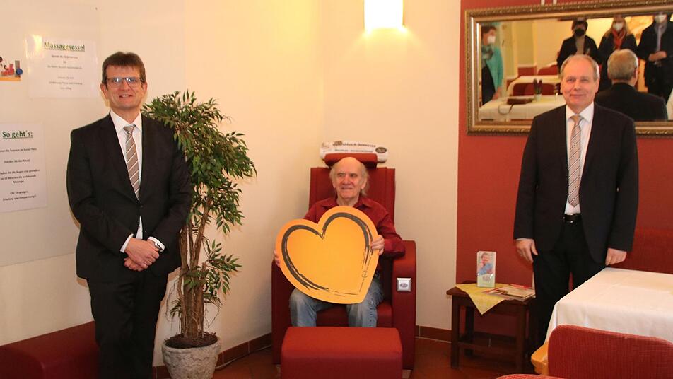 Nach Diebstahl eines Massagesessels aus dem Juliusspital wollten die VR-Bank Bad Kissingen und das Möbelhaus Angermüller helfen. Jetzt gibt es drei Sessel in den Altenheimen.
