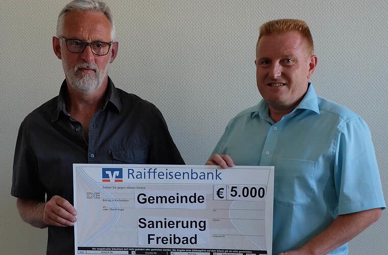Bei dieser Glückwunschaktion kam eine Summe von 3000 Euro zusammen, die der Jubilar auf 5000 Euro aufstockte und jetzt Bürgermeister Matthias Klement überreichte. "Ich war gerade mal zehn Jahre alt, als das Freibad an der Centleite unterhalb der Schule gebaut wurde", sagt Schüller. Seit seiner Kindheit hat er einen Bezug zu dieser Einrichtung. "Mein Vater Friedrich war seinerzeit der Wasserwart des Marktes Maßbach, und ich kann mich noch gut erinnern, wenn er mich mitgenommen hat, das Schwimmbad zu füllen, denn eine Umwälzpumpe gab es damals noch nicht. Dieser Einbau erfolgte 1978 als erste größere Maßnahme nach Ablegung meiner Meisterprüfung". Die Prozedur des Befüllens dauerte meist drei Tage und die Wassertemperatur war deshalb nicht regulierbar. Der Spender hat vier kleine Enkelkinder und wünscht sich, dass von dem Betrag auch ein Sonnensegel für Kinder und Mütter angeschafft wird.