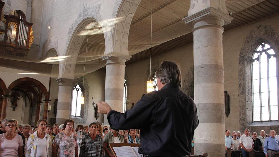 Das Regionaltreffen mit dem Gottesdienst zum Abschluss war auch für die Sänger herausragend: "Dieses Gemeinschaftserlebnis zu spüren, ist etwas Besonderes", betone Markus Wollmann (Chorleiter in Bad Brückenau). Wollmann sprach von einem Aha-Erlebnis. "Für solche Ereignisse singt man eigentlich", stellte sein Chorkollege Christoph Starz fest. In einem so großen Gemeinschaftschor zu singen, war für den Bad Kissinger Sänger Winfried Pfülb eine Premiere, auf die sich die Bad Kissinger Kantorei in den letzten Wochen gerne vorbereitet hatte. Alrun Lintner (Münnerstadt) freute sich, dass dieses Treffen zum Patrozinium der Stadpfarrkirche stattfinden konnte. Für sie war es spannend zu erleben, wie das Zusammenspiel von Chören und Musikern funktionierte. Langer Applaus beschenkte die Akteure. Pater Markus sprach von einem Geschenk, das die Chöre und Musiker der Münnerstädter Pfarrei zum Patrozinium gemacht hätten. Beim Blick in die voll besetzten Bänke lud er die Akteure ein, auch am kommenden Samstag Gast in der Vorabendmesse der Stadtpfarrkirche zu sein.