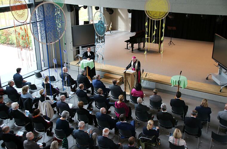 Eine Einweihungsfeier folgt einem Muster. Es werden Reden gehalten und Dank ausgesprochen. Vielleicht lag es ja an dem viel beschworenen besonderen Geist, der an dieser Schule herrscht, dass die Einweihungsfeier des neuen BBZ ein wenig anders war. Und das lag nicht nur daran, dass die Feier wegen Corona knapp ein Jahr nach der eigentlichen Eröffnung stattfand und das Gebäude sich längst bewährt hat. Da verglich Staatsministerin Dorothee Bär (CSU) das BBZ mit dem Reichstag und kündigte an, dass Landrat Thomas Bold (CSU) den Spüldienst übernehmen werde. Da redeten der evangelische Stadtpfarrer Martin Hild und Weihbischof Ulrich Boom spontan über einen gemeinsamen christlichen Religionsunterricht: Obwohl die Festreden und Grußworte rund zwei Stunden dauerten - dabei dürfte es niemanden langweilig geworden sein.