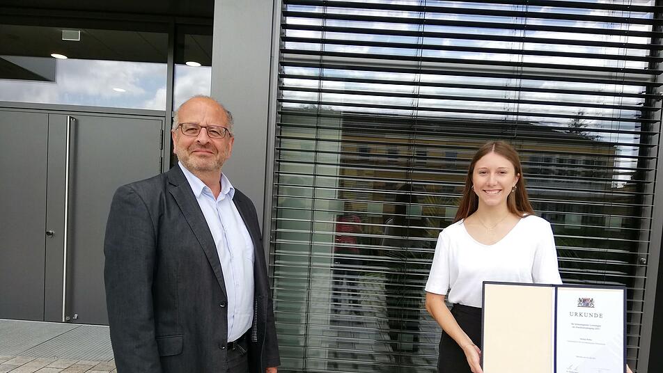 Selina Hehn bedankte sich bei der Schulleitung des BBZ, dass die Wahl auf sie gefallen war. "Sie haben es sich verdient", erklärte BBZ-Chef Georg Gißler. Die Absolventin habe nicht nur ihr Berufspraktikum mit der Note 1,0 abgeschlossen, sondern sich auch immer im Schulleben engagiert. Georg Gißler und sein Stellvertreter Christian Zintl erwähnen so das musikalische Engagement Selina Hehns bei Schulveranstaltungen. Außerdem habe sie für ein indisches Schulprojekt eine Spendenaktion am BBZ durchgeführt.