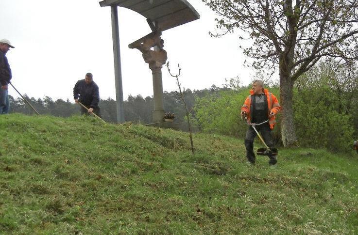 Die Termine für diese Aktion schreiben die Natur und der Prozessionskalender der Pfarrgemeinde vor: Wenn Ende April die Markusprozession und Mitte September die "Kreuzerhöhung"-Prozession an den beiden Denkmälern eine Gebetsstation einlegen, dann soll das Gelände im näheren Umfeld sauber aussehen. Diese Aktionen sind für die Elferräte neben Fasching eine Pflichtaufgabe, da sie vor Jahren ja auch die Restauration der Denkmäler veranlassten und durchführten.