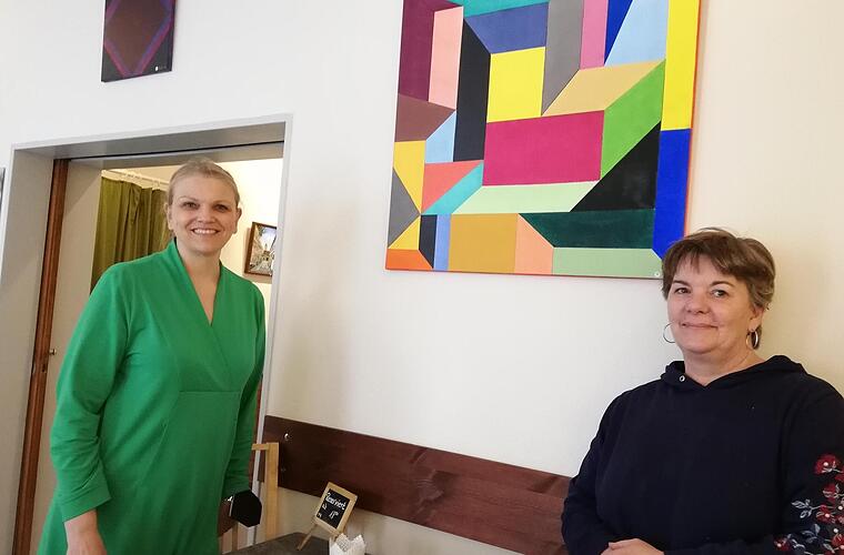 Die Vorsitzende der Münnerstädter Heimatspielgemeinde,Claudia Kind, freut sich über die Solidarität. "Das finde ich toll". Als Dankeschön will sie Karl-Heinz Neubauer Eintrittskarten für das Heimatspiel zukommen lassen, erklärte sie der Betreiberin des Altstadtcafés, Susanne Hanshans. Die Münnerstädterin bietet Kunstschaffenden die Möglichkeit, in den Räumen ihres Cafés künstlerische Arbeiten auszustellen. Karl-Heinz Neubauer widmet sich seit seiner Pensionierung der Malerei und experimentiert dabei mit unterschiedlichen Techniken. Diese Bandbreite zeigt sich auch in den ausgestellten Bildern.