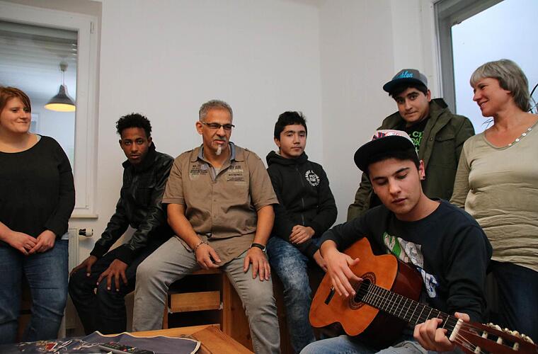 Einmal in der Woche hat der 17-jährige Hamodi eine Gitarrenstunde. Seit drei Monaten übt er fleißig Akkorde. Jetzt will er ein kurdisches Lied einüben und via Facebook zu seiner Familie nach Syrien schicken. Hamodi ist einer von acht unbegleiteten, minderjährigen Flüchtlingen, denen das Netzwerk für soziale Dienste in seinem im August eröffneten Haus "Akwa Aba" in Münnerstadt ein zuhause auf Zeit gibt. "Es war von Anfang an eine sehr familiäre Atmosphäre", sagt Maria Herleth, Betreuerin im Haus.