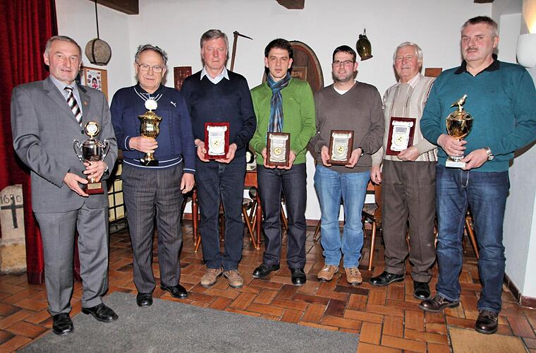 Ein ganzer Tisch voller silbern blinkender Pokale stand in der Mitte des Gastraumes, als im Deutschherrnkeller die Stadtmeister der Brieftaubenzüchter der fünf Vereine 05107 Heimkehr Münnerstadt, 0064 Münnerstadt, 08088 Einigkeit Wermerichshausen, 0123 Reichenbach und 0731 Windheim geehrt wurden.