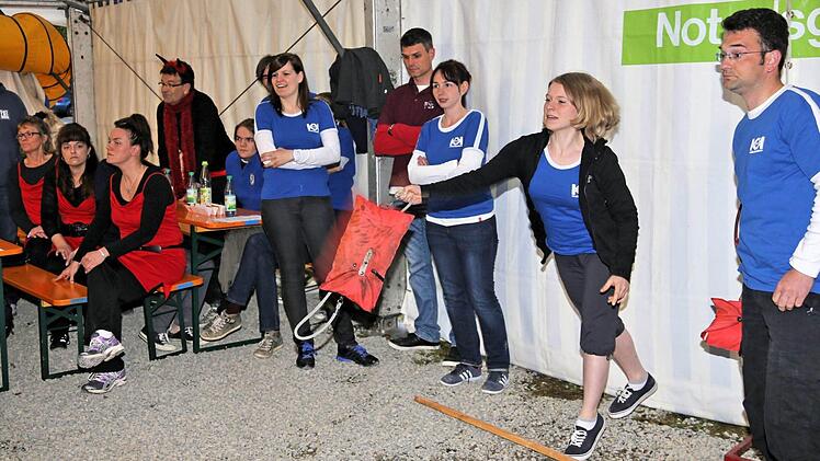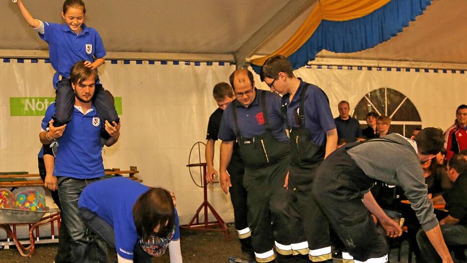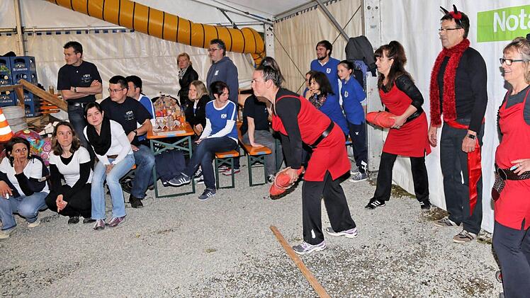 Nach dem traditionellen Aufstellen des Maibaums am 1. Mai war die Gaudi-Nacht-Olympiade am 2. Mai im Festzelt neben dem Rathaus der erste große Höhepunkt. 18 Mannschaften, zwei Drittel davon von Freiwilligen Feuerwehren aus der näheren und weiteren Umgebung, die anderen von Vereinen und Gruppen aus dem Stadtteil, kämpften fast drei Stunden lang um Sekunden und Punkte. Erst dann standen die Sieger in diesem nicht ganz ernst gemeinten Wettbewerb fest. Die Älteren unter den Besuchern fühlten sich an die internationale Fernsehshow "Spiel ohne Grenzen" mit Mannschaften aus zahlreichen europäischen Nationen erinnert, die vor 40 Jahren ein echter Straßenfeger war.
