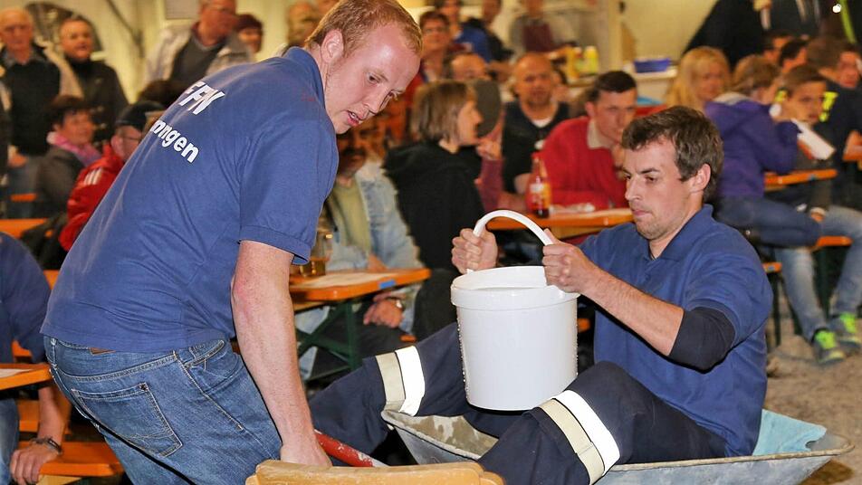 Zum 135-jährigen Bestehen der Freiwilligen Feuerwehr Kleinwenkheim und dem Florianstag lieferten sich 18 Mannschaften einen nicht ganz ernst gemeinten Wettkampf.