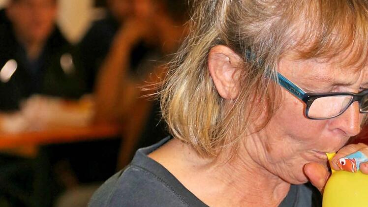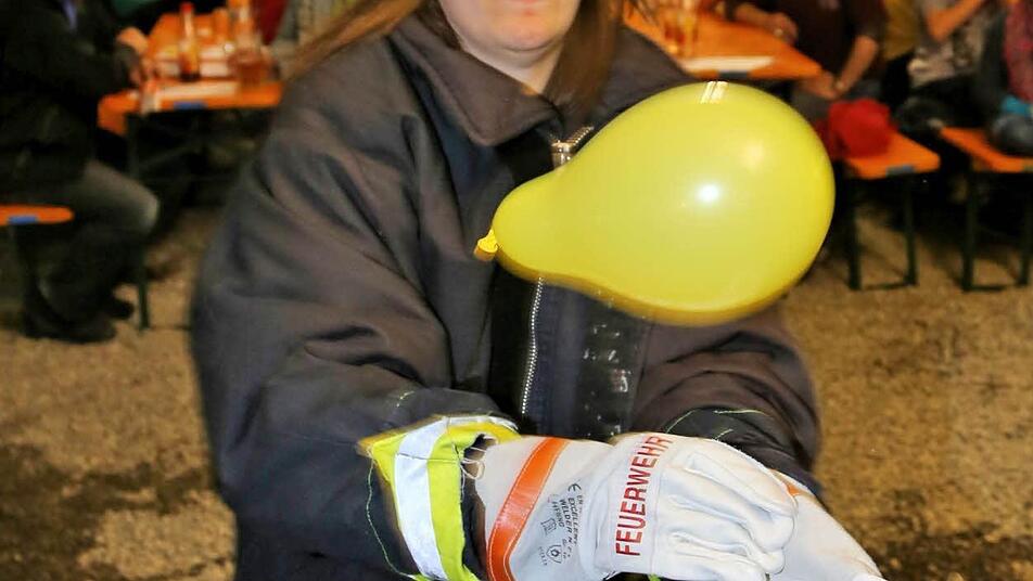 Besonders knifflig "Schneller als die Feuerwehr" hieß der vierte Wettkampf. Es galt, zuerst einen Luftballon aufzublasen und dann eine auf links gedrehte Feuerwehrjacke richtig herum anzuziehen und noch Handschuhe überzustreifen. Das wäre einfach, wenn nicht der Luftballon ständig in der Luft bleiben müsste. Die Teilnehmer mussten mit dem Kopf, Händen und Füßen arbeiten, um diese Bedingung zu erfüllen. Manche schafften es gar nicht.