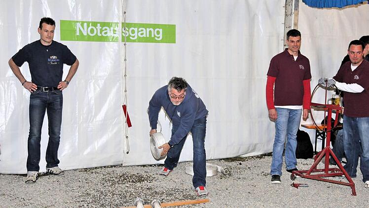 Im Vorstand ausgeheckt Der Vorstand der Kleinwenkheimer Feuerwehr hat es sich nicht einfach gemacht, eine wirklich unterhaltsame Gaudi-Nacht-Olympiade auf die Beine zu stellen. "Wir haben die Ideen dazu gemeinsam im Vorstand ausgeheckt und auch ein wenig im Internet recherchiert", sagte Vorsitzender Nico Reuss. Dass die meisten Aufgaben etwas mit der Feuerwehr zu tun hatten, versteht sich von selbst. "Haut euch nicht die Zähne aus, das ist ein Gauditurnier", ermahnte Reuss die Teilnehmer noch, bevor er das Mikrofon an Helmut Schlembach übergab.